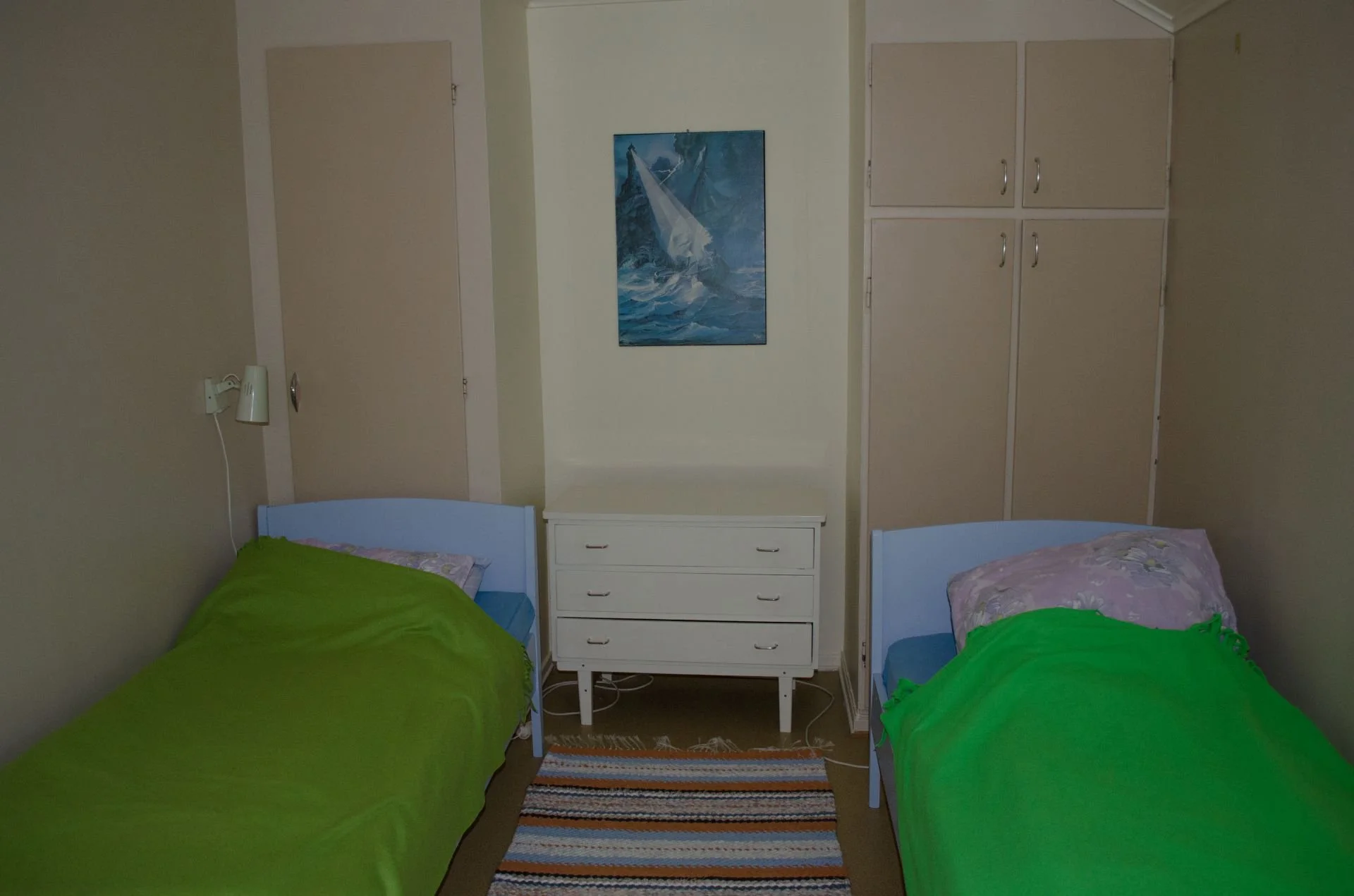 Clean and comfortable oceanfront apartment with three bedrooms and six single beds total.